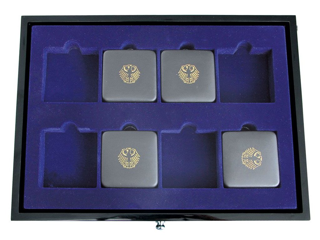 Für Luxusní lakovaný dřevěný šuplík - n-Schatulle 6590 und Luxusní lakovaný dřevěný šuplík - n-Stapelelement 6591 . · Luxusní lakovaný dřevěný šuplík - mit doppelter Höhe für 8 Etuis bis 78 x 78 mm, · Z .B. für 100-Euro-Gold-Deutschland. Bei Verwendung dieser Doppel-Luxusní lakovaný dřevěný šuplík - finden anstatt 6 nur noch 4 weitere Münz-Luxusní lakovaný dřevěný šuplík - n Platz.